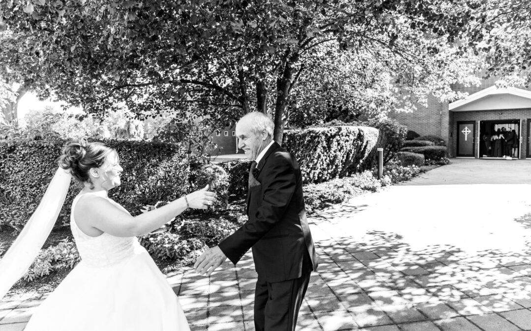 Bride hugging grandfather at church candid moment east brunswick NJ