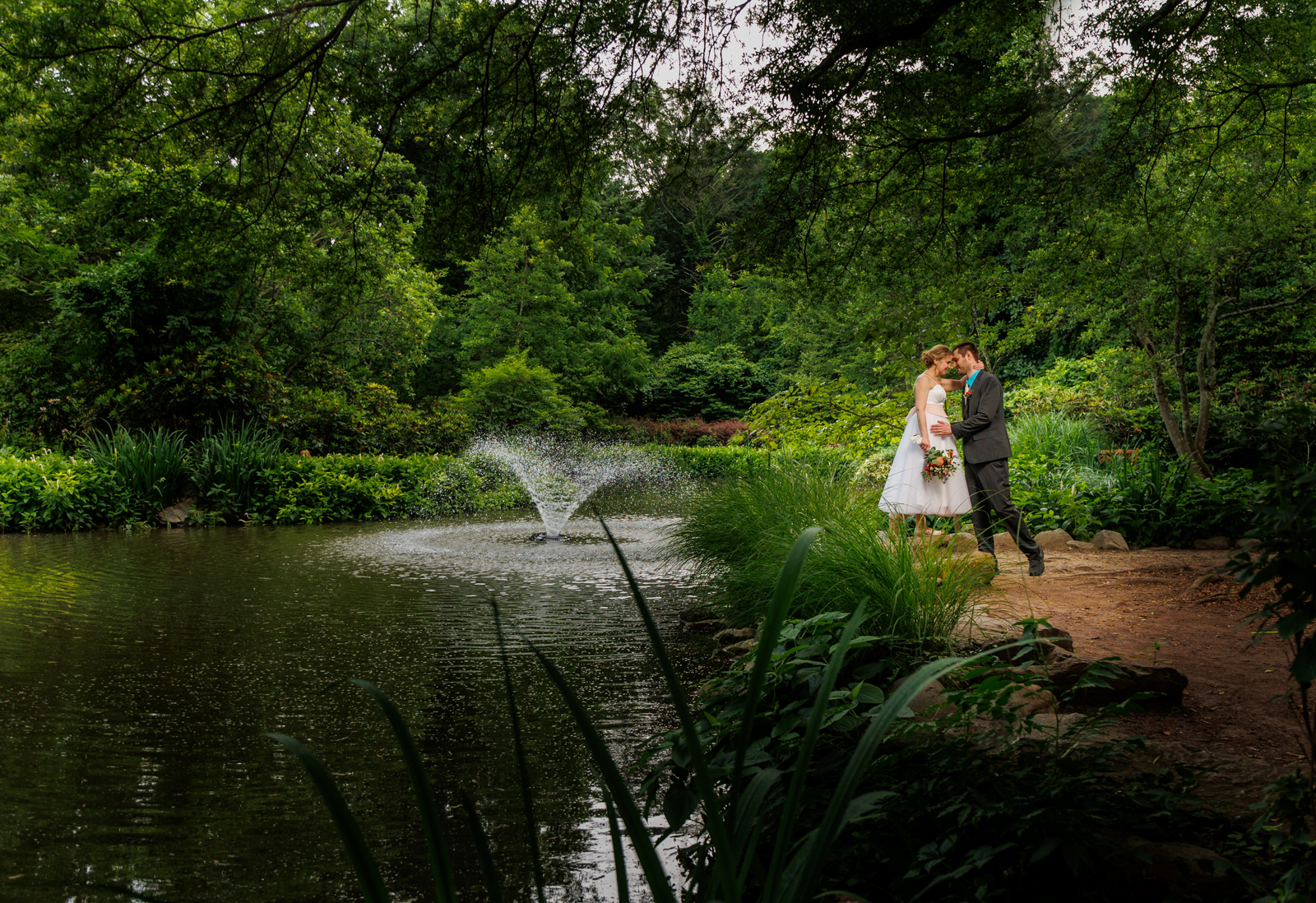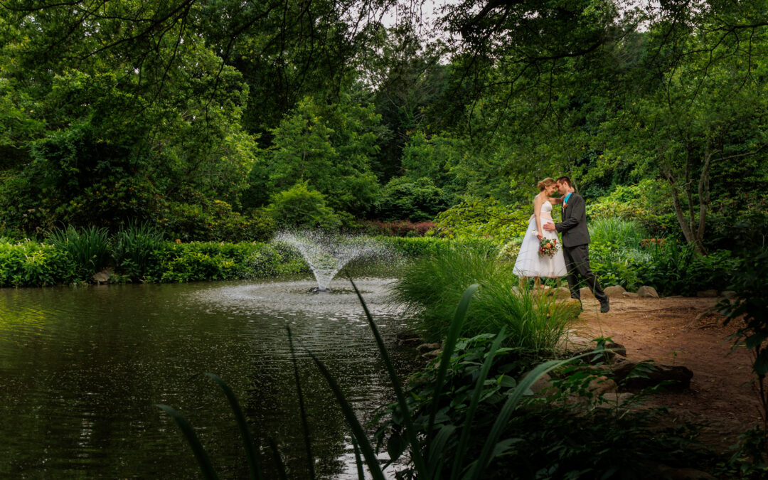 Sayen House and Gardens wedding couple fountain portrait