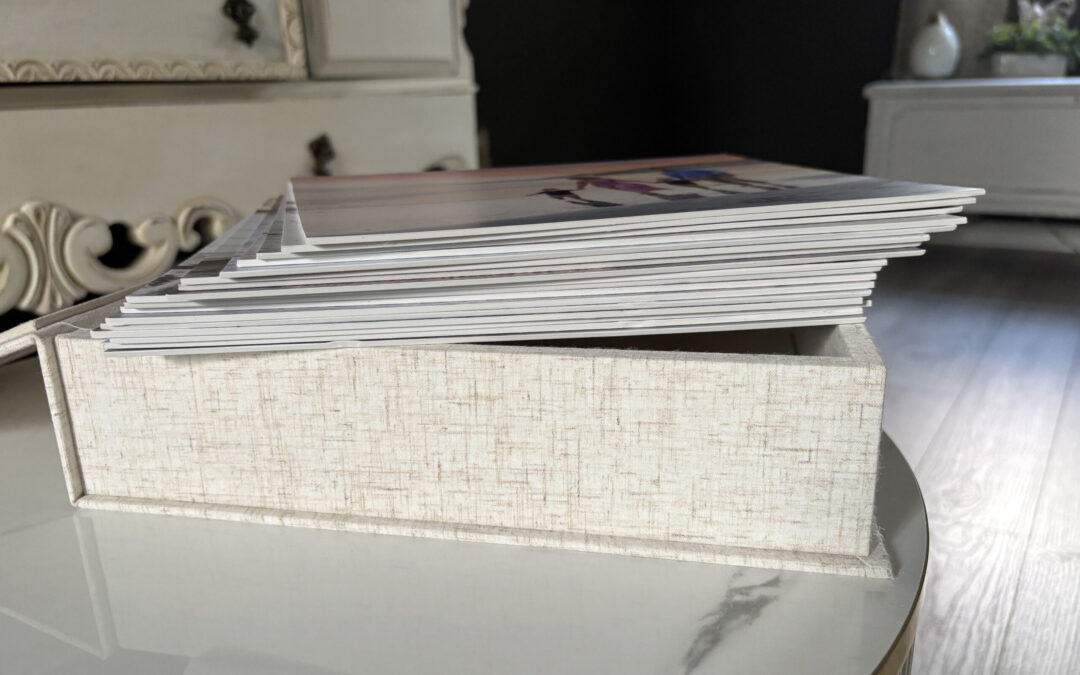 Mounted photos in box