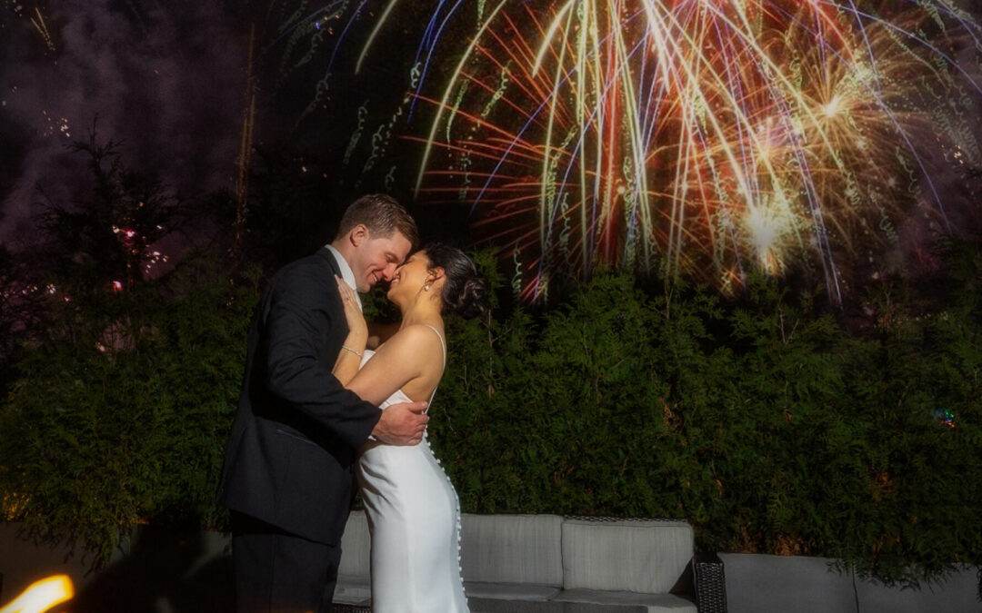 Bride and groom fireworks