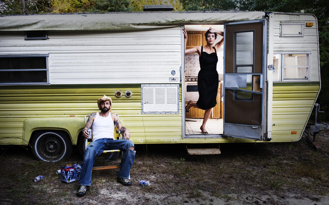 RV- Trailer- Portrait -Engagement -redneck -white trash -photoshoot-model-fashion